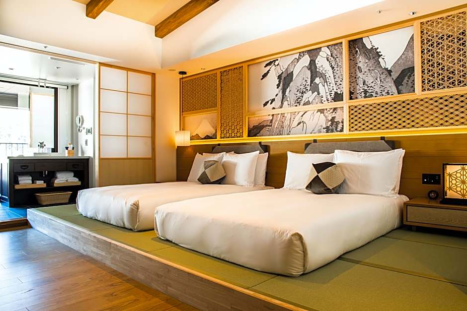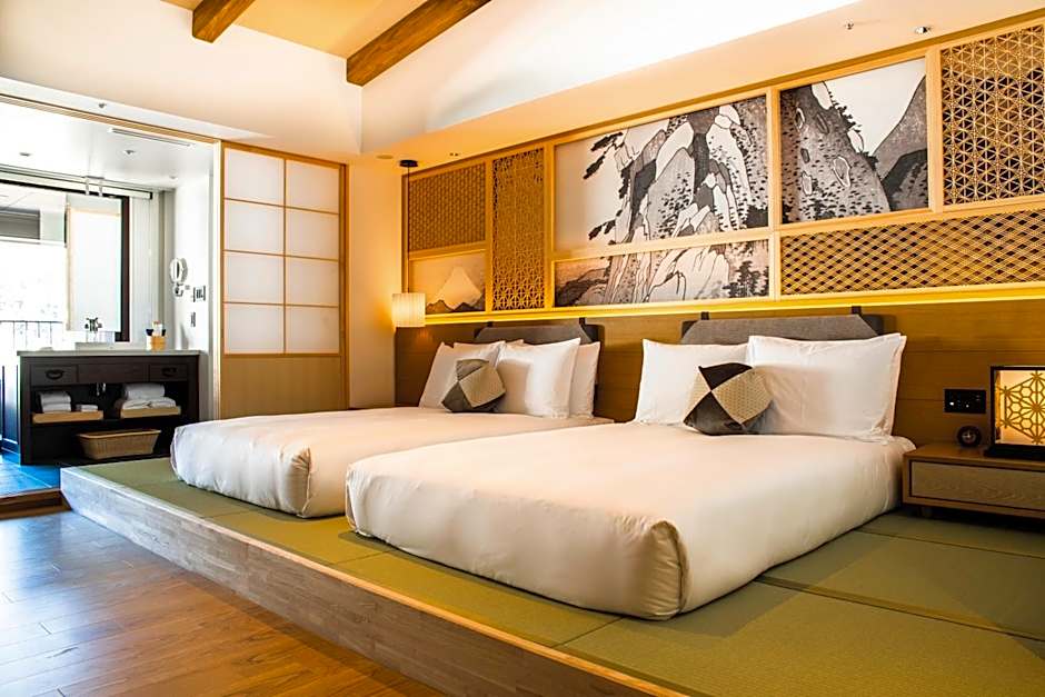 This suite's special features are the hot tub and the private open-air bath. The spacious suite provides air conditioning, a mini-bar, a balcony with river views as well as a private bathroom featuring a walk-in shower. The unit offers 2 beds.